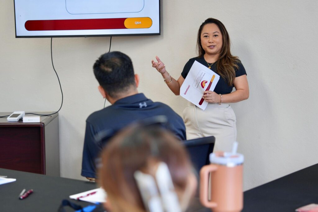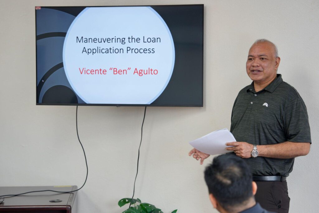 A standout highlight of the program was the presentation delivered by First Hawaiian Bank’s Oleai Branch leadership team: Vickie Izuka, Vice President & Branch Manager; Vicente Agulto, Assistant Vice President & Business Banking Officer; and Piarose Aguon, Senior Merchant Services Representative. Their session provided veterans with valuable insights into understanding credit, navigating the loan application process, and leveraging payment processing solutions to support business growth.